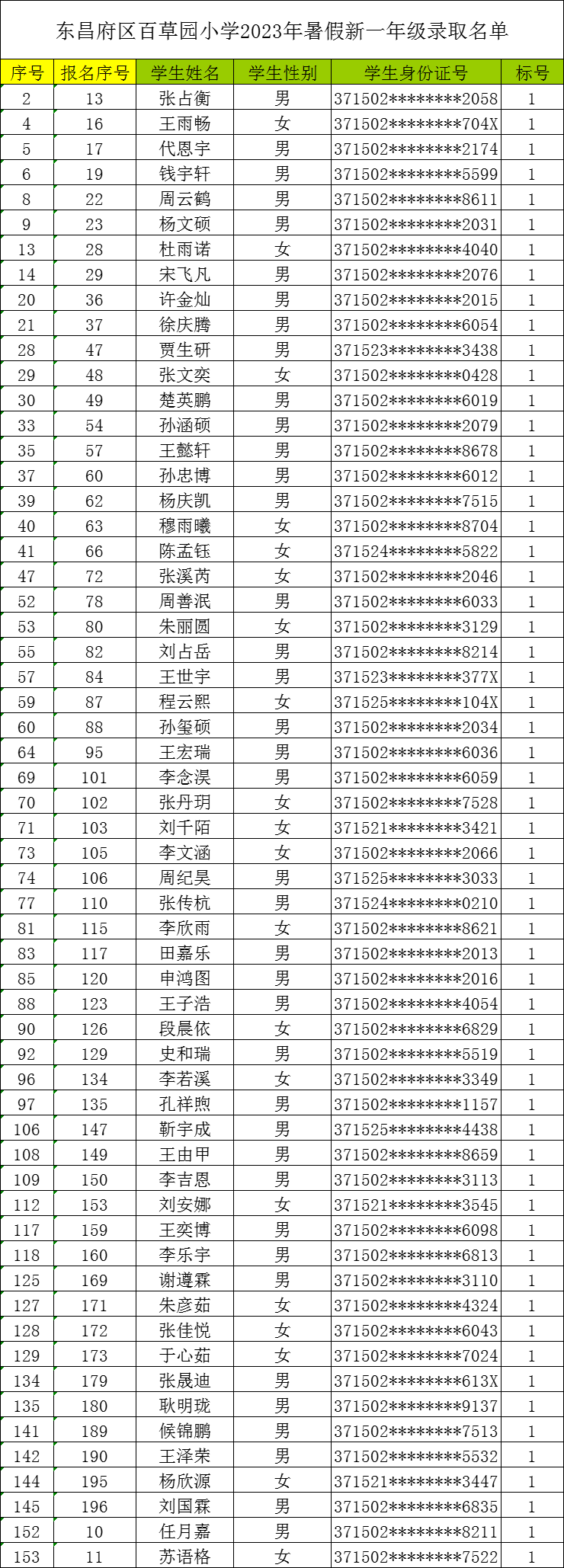 8月3日下午,東昌府區(qū)百草園小學(xué)在區(qū)人大代表、區(qū)教體局、魯西公證處、媒體代表、教師代表以及新生報名家長代表現(xiàn)場監(jiān)督下進行了隨機派位,現(xiàn)將錄取名單公布如下: