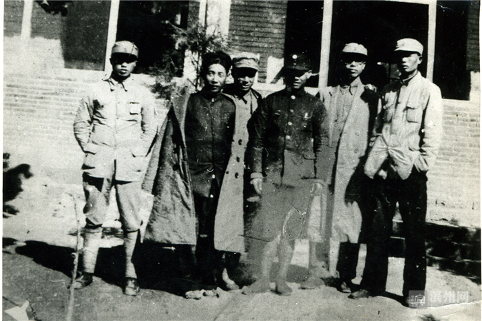1938年10月,八路軍山東抗日游擊第三、四、八支隊負責人合影。左起韓明柱、姚仲明、霍士廉、廖容標、馬耀南、張文通。